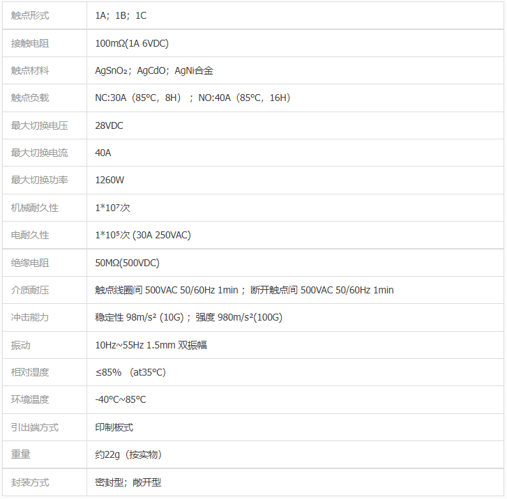 ◆ 40A触点切换能力