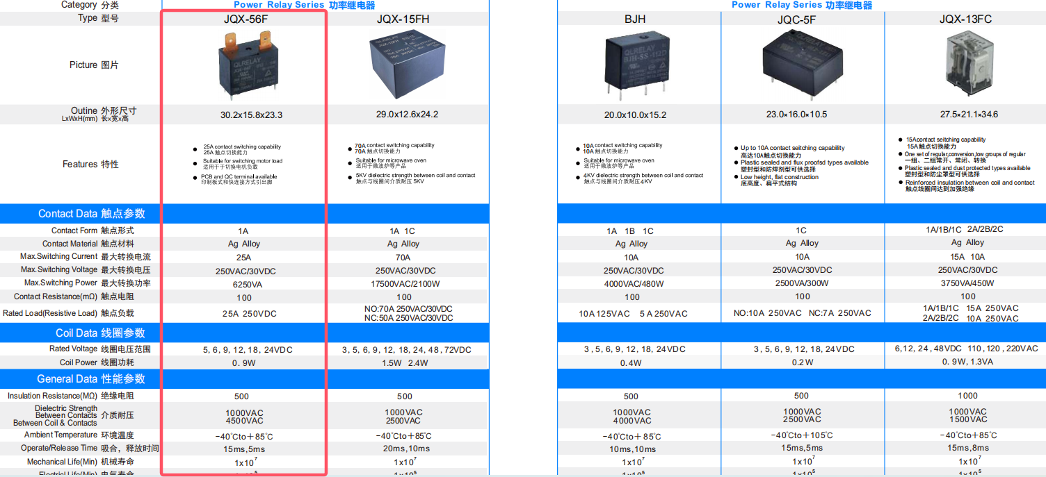 功率继电器 JQX-56F