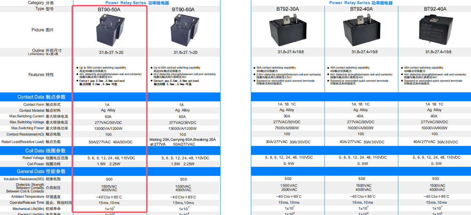 功率继电器 BT90-50A