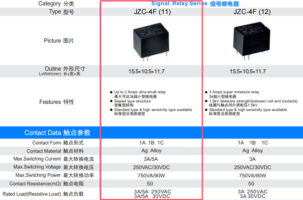●最大可达3A超小型继电器